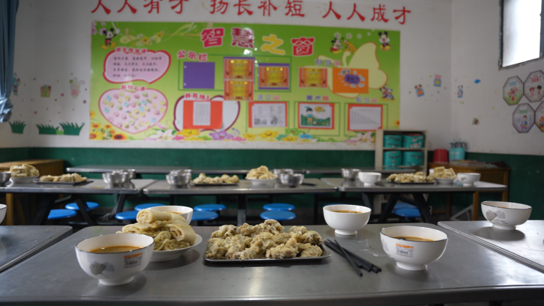 刚踏进校园,全校30名学生、校长老师们和家长代表以及西阳乡分管教育的领导就迎了上来,大家走在被雨水冲刷一新的塑胶操场和铺满人工草皮的小小校园里,走进今年暑假刚改造完成的干净整洁的师生食堂,大冰柜、留样柜等各种厨具设备齐全,食材有序存放,厨师阿姨正忙碌地准备着营养均衡的午餐。苏校长说现在娃娃们每天中午可以在学校吃上热乎乎的饭菜,彻底改变了学生们以往中午只能啃干馍馍的状况,家长们都非常高兴。