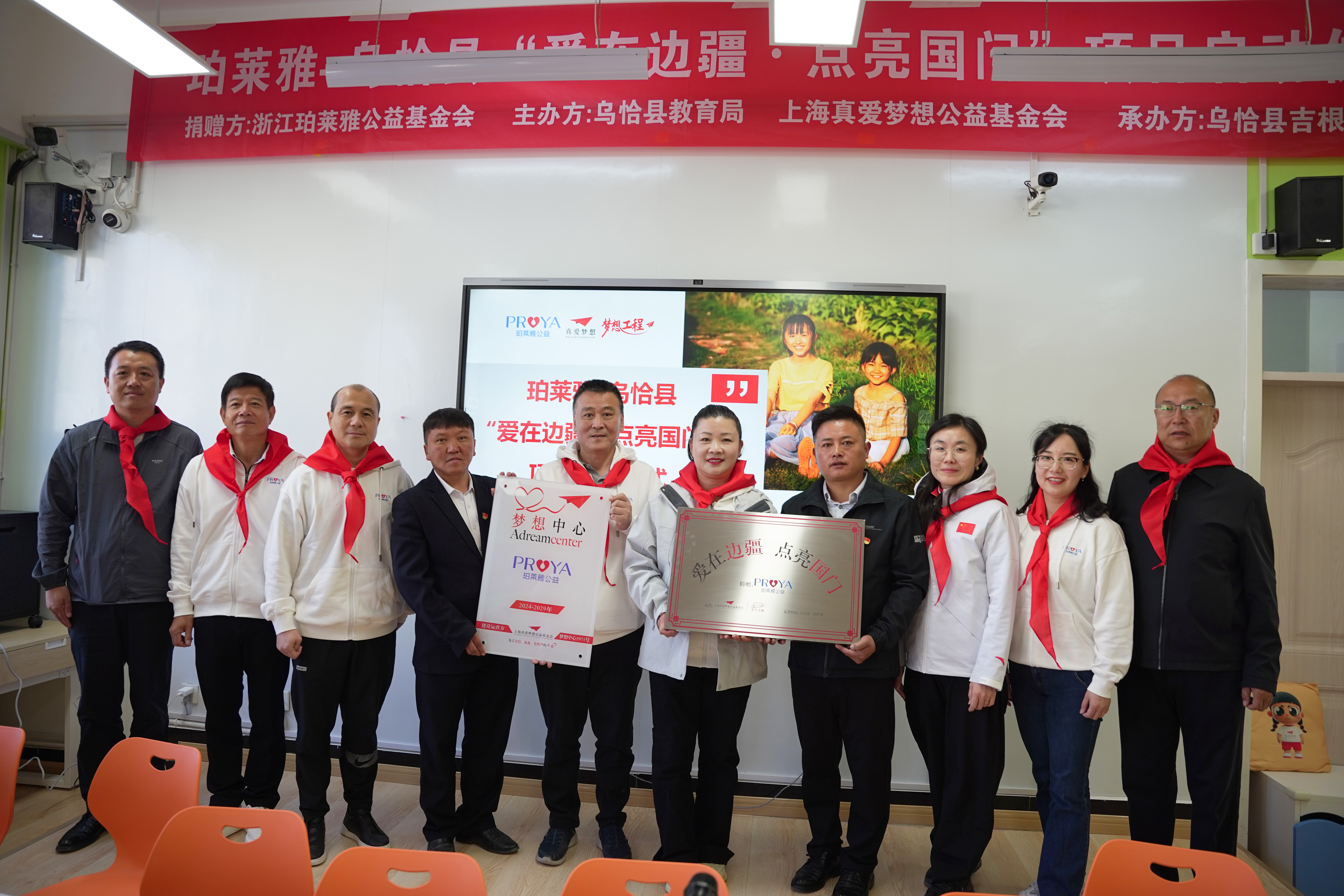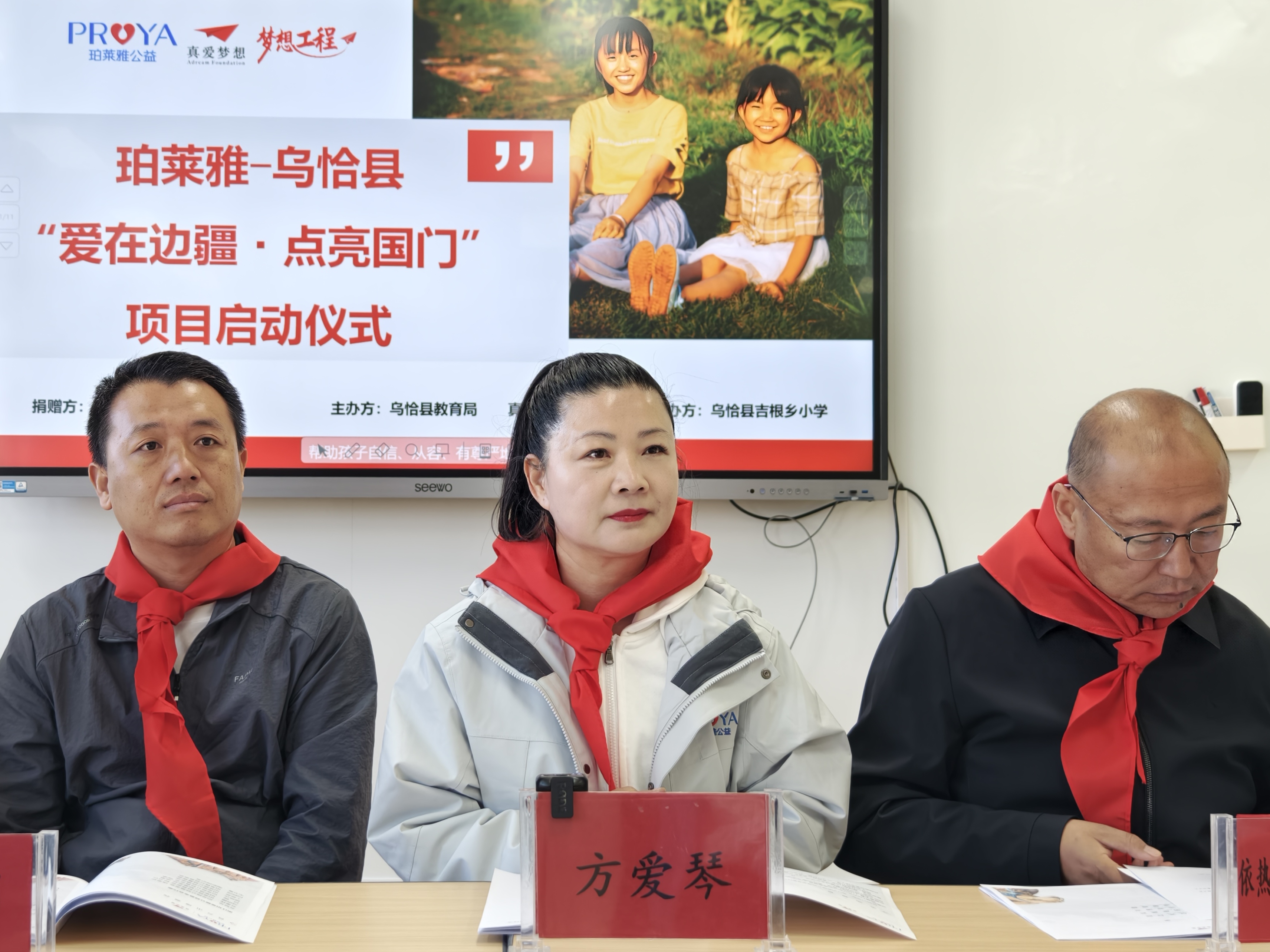 上午10点半,在吉根乡小学新建成教学楼的梦想中心教室里,珀莱雅·乌恰县“爱在边疆·点亮国门”公益项目启动仪式正式开启,克州教育教学研究中心主任、乌恰教育局党组书记和局长、真爱梦想公益基金会秘书长等出席活动。珀莱雅公益基金会理事长方爱琴和公益生态伙伴代表将“爱在边疆·点亮国门”和“梦想中心”两块项目授牌传递给校方代表,标志着该项目正式落地。珀莱雅公益基金会秘书长方秦伟为学校老师们送上珀莱雅礼盒和茶叶,祝福大家教师节和中秋节快乐。