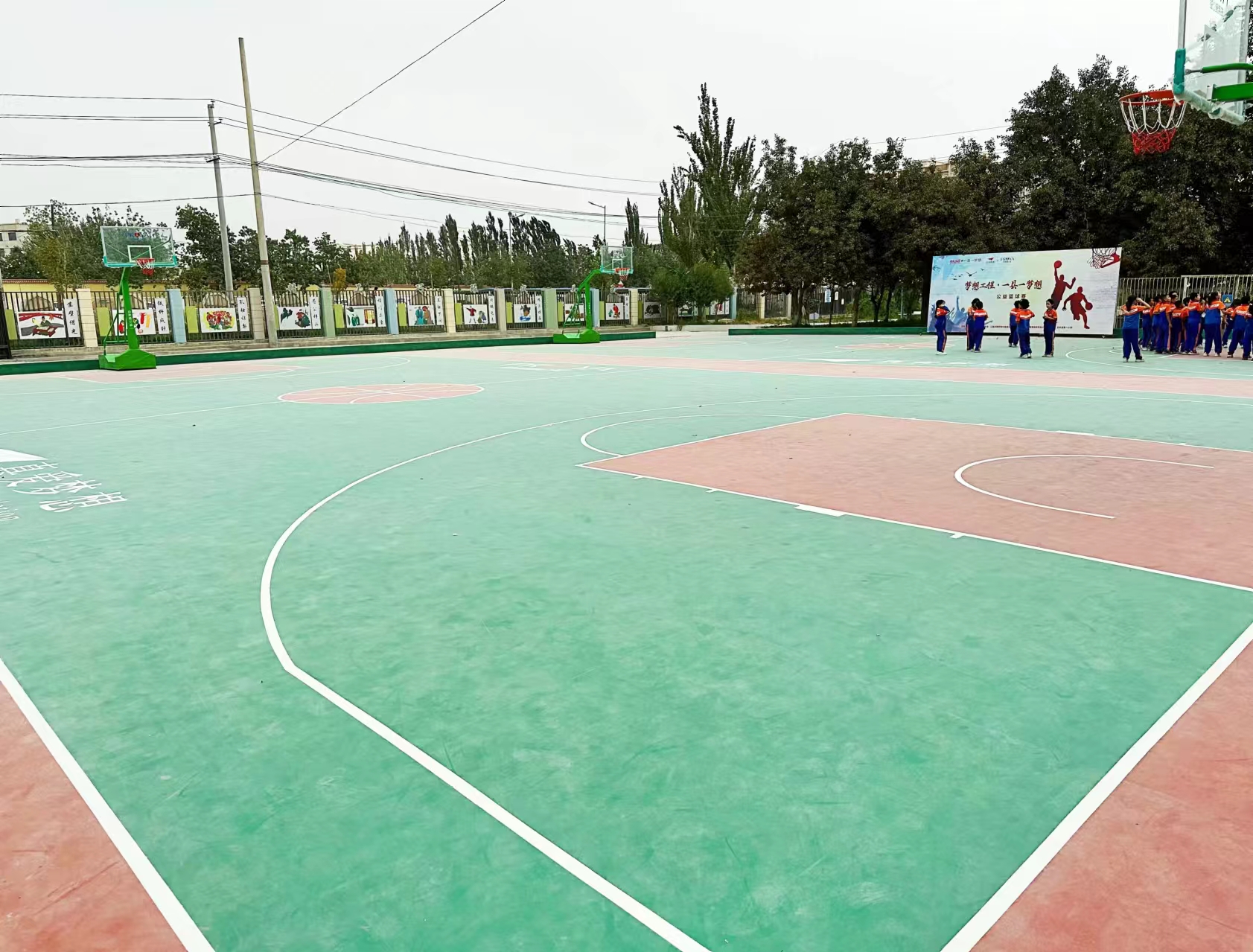 新篮球场于2024年6月28日开工建设,8月10日完成验收。历时近2个月,一个占地面积1258平方米,安全环保的纳米硅PU篮球场正式投入使用,红绿白相间的场地落成让一小的孩子们开心不已。