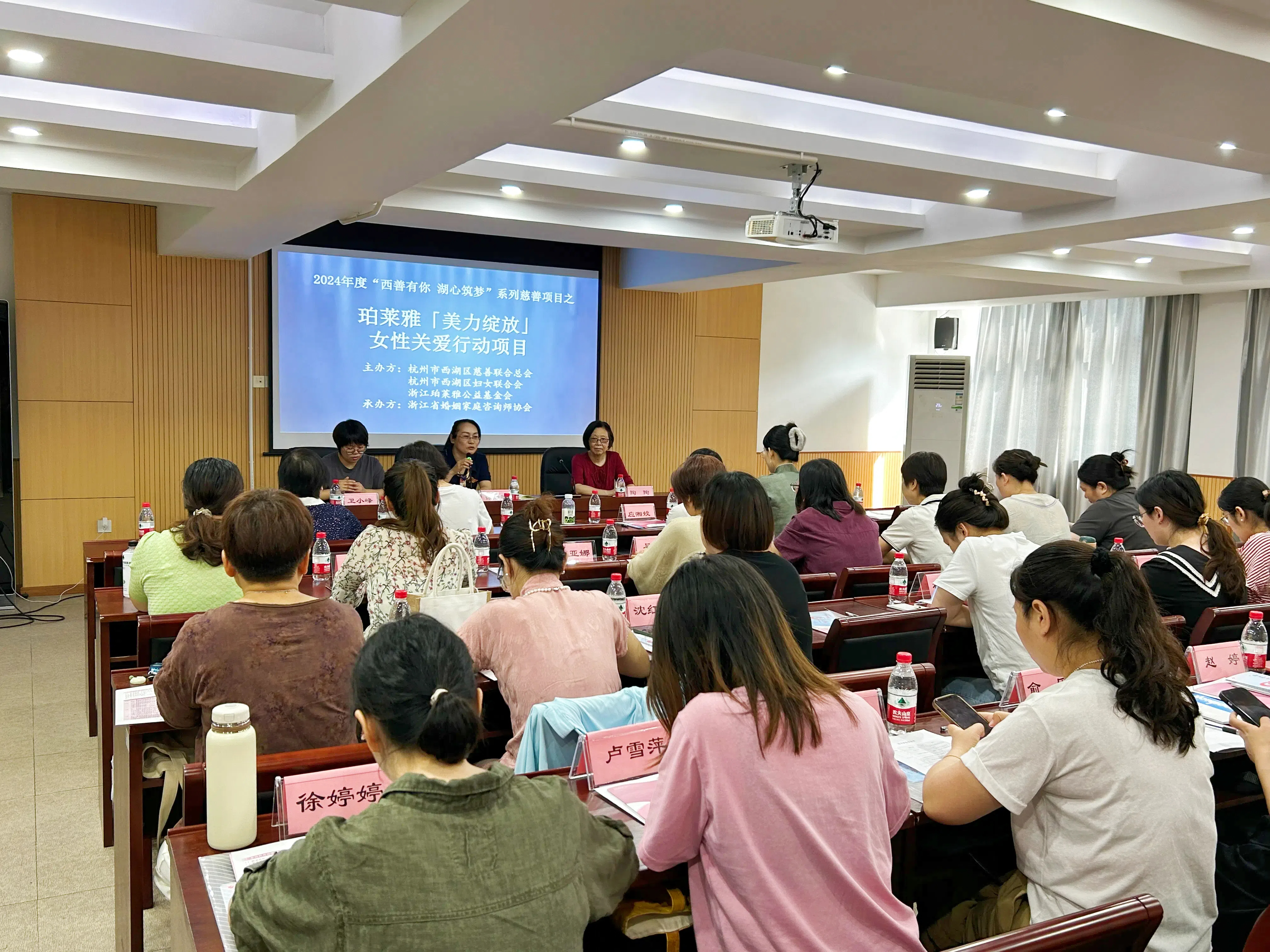 Professional Training for Marriage and Family Mediators. A total of 40 trainees, including grassroots women's federation cadres and members of the Xihu Women Caring Group, participated in this training. Former Director of the Women's Rights Department of the Hangzhou Women's Federation and current President of the Hangzhou Marriage and Family Association, Ms. Tao Tao, shared her insights on "Practical Work in Mediation of Marriage and Family Disputes in the New Era", discussing strategies and methods for mediating marriage and family disputes in the context of the new era. Lawyer Jiang Sirui, an expert from the 12338 hotline, provided detailed explanations on techniques for addressing issues such as domestic violence, labor protection for female employees, sexual harassment, and marital and family conflicts.