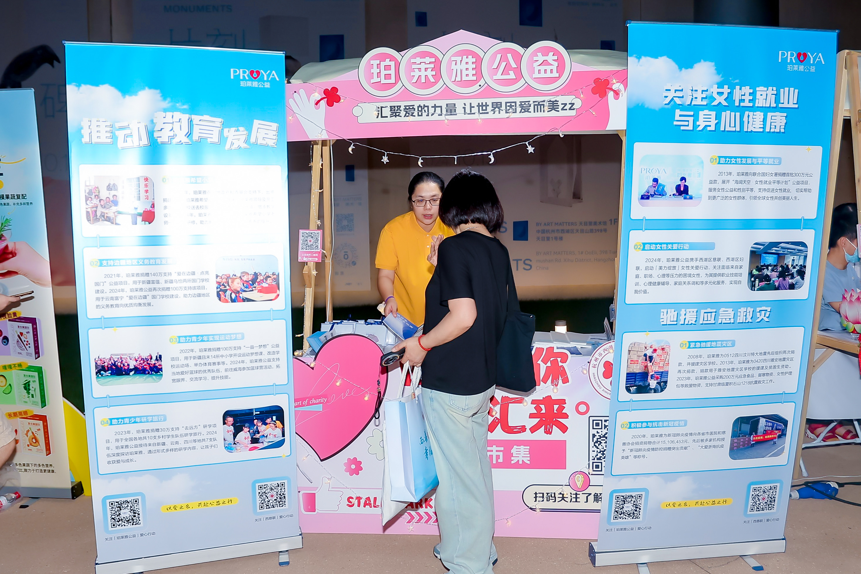 As one of the event's organizers, the foundation participated in the charity project exhibition at the public welfare market. At the event, PROYA employee volunteers enthusiastically shared PROYA's public welfare practices to local residents. From a series of women's care initiatives to promoting educational development in border regions, and providing emergency disaster relief, PROYA has consistently adhered to its philanthropic mission, actively shouldering social responsibility, and fulfilling its vision of "gathering the power of love and making the world more beautiful".