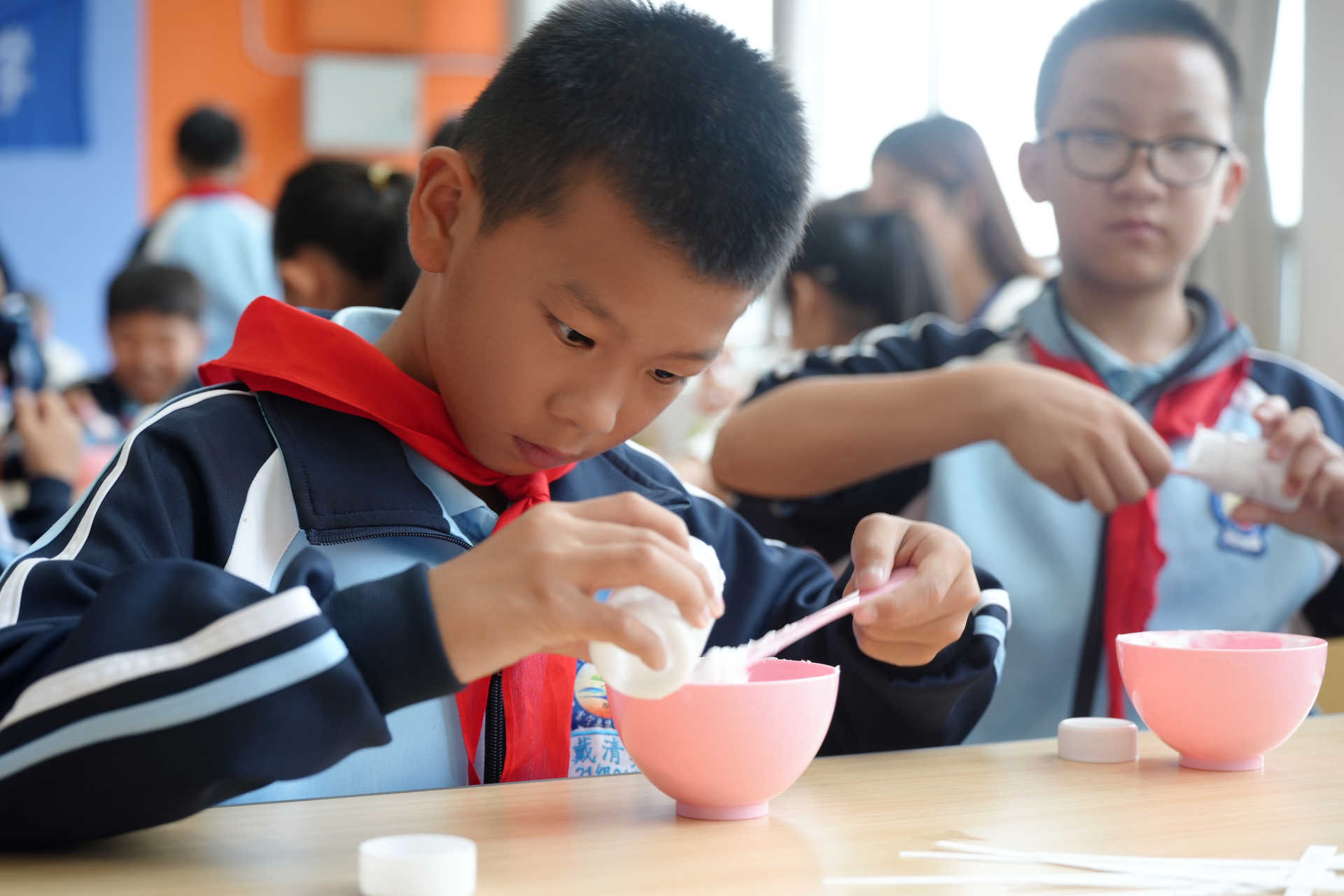 体验乡土文化,也感受创新课堂。珀莱雅志愿者老师带来一堂香氛护手霜DIY工坊,孩子们第一次体验调香,感受8种不同的香氛,并根据自己的喜好添加到膏体中。搅拌时的专注、装瓶时的雀跃、展示作品时的骄傲,教室里弥漫着花香与欢笑,从没做过护手霜的孩子们又新奇又激动。在动手创造中培养审美力,用创新课程打开认知世界的窗口。