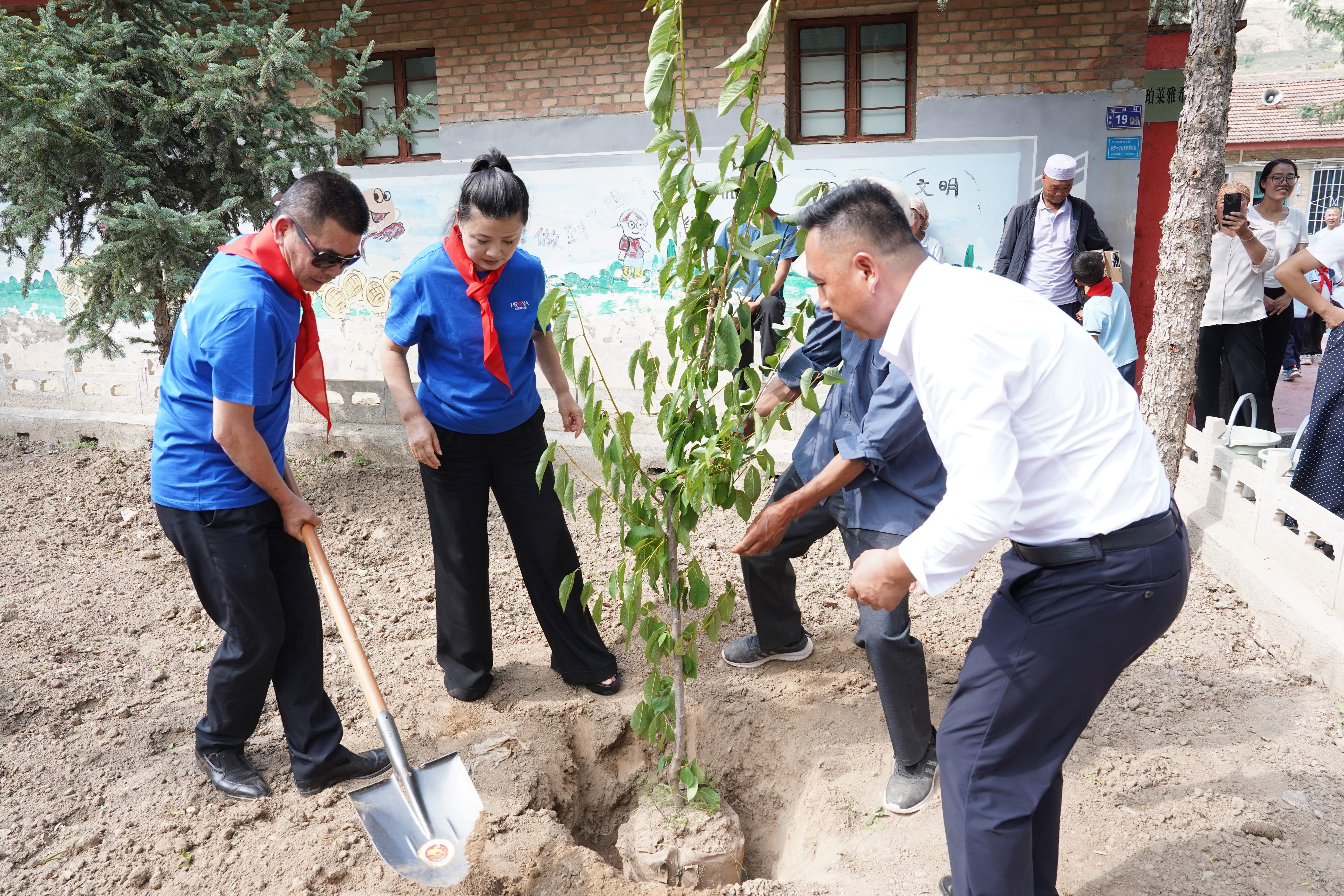 在活动的尾声,是最具象征意义的一刻:珀莱雅公益团队与全校师生一起合力在校门口种下了“感恩果树”,大家齐心协力盖土、浇水,共同期待着小树苗早日开花结果。这片感恩果园,既是感恩过去18年携手同行的见证,更是对未来生生不息的希望许下承诺。