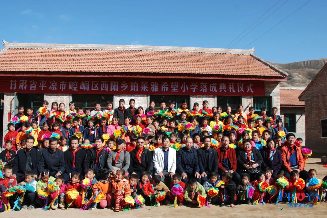 2007年7月,珀莱雅在甘肃省青少年发展基金会和当地地方政府支持下,出资捐建珀莱雅希望小学,学校位于甘肃省平凉市崆峒区西阳回族乡安河村。