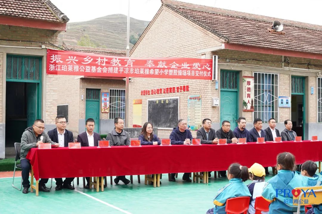 今年8月,珀莱雅出资40多万为学校进行校园硬化和铺设塑胶操场。校长说:“这是平凉市北部山区第一所拥有塑胶操场的村小,学校里34名娃娃从此不用在坑坑洼洼的水泥地上玩耍了,幼儿班娃娃也能滑滑梯和玩玩具了。”