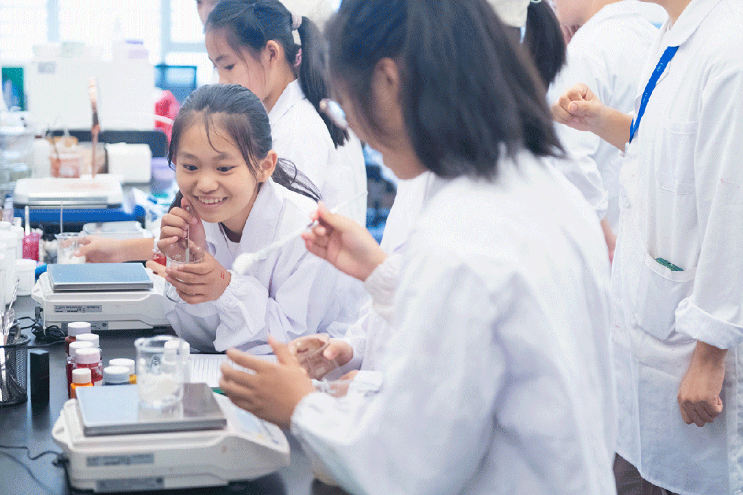 透过研发创新中心参观通道的落地玻璃,孩子们见到了大型配方实验室、各式各样先进的实验仪器和正在忙碌的工程师。在志愿者老师深入浅出的讲解中,孩子们对研发、质检等工作产生了浓厚的兴趣,他们非常认真地听着老师分享从事这些工作岗位所需的专业能力。“研发是一件需要长期坚持的工作,希望同学们能透过原料的多样性和配方的神奇,感受到科技与创新的力量。”