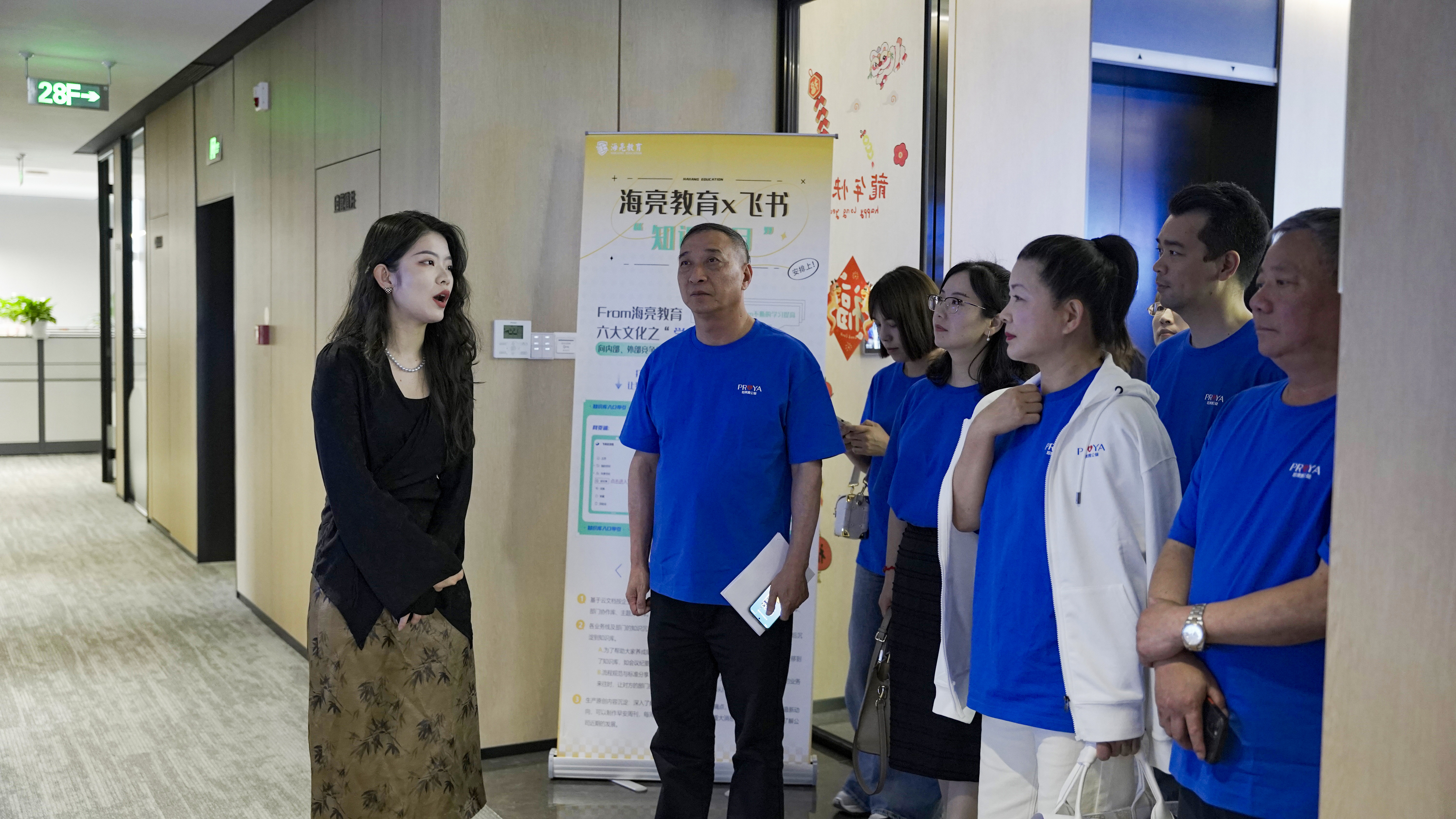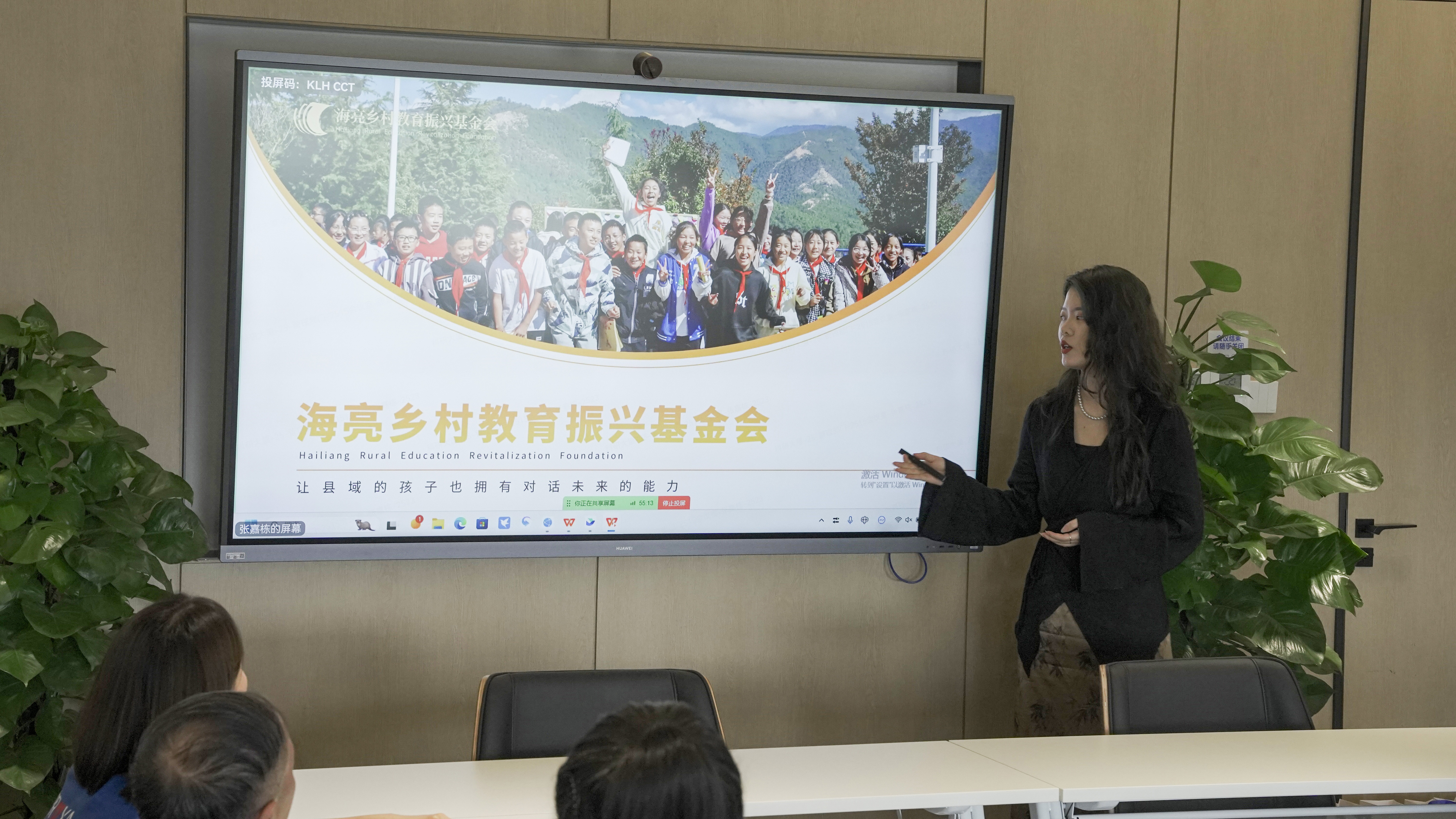 海亮乡村教育振兴基金会副理事长兼秘书长刘卓青热情接待珀莱雅公益团队参观海亮科研大厦,游览91短视频墙,详细讲述了海亮教育科技服务集团91短视频、发展历程、所获荣誉成就等等情况。