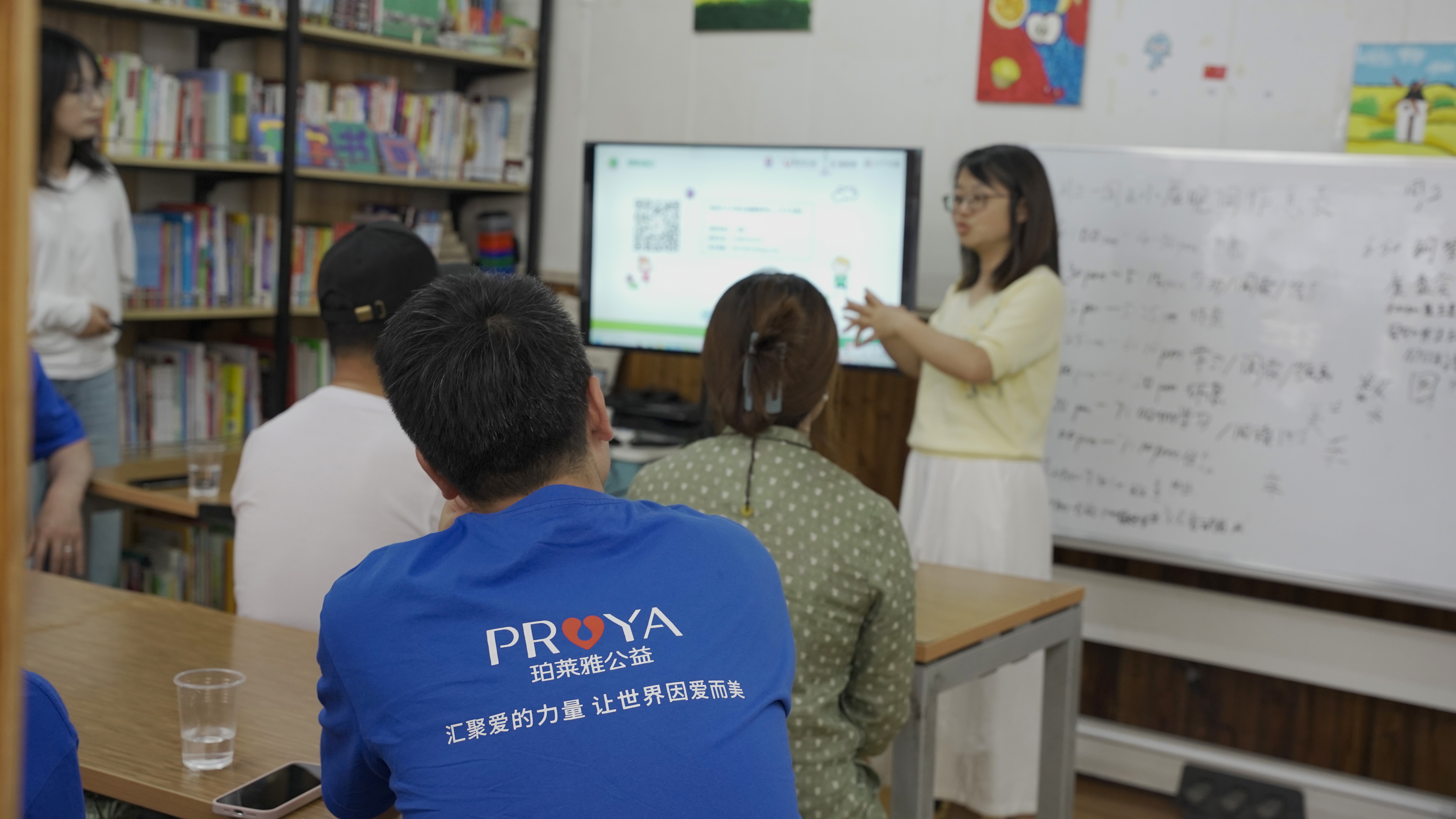 “‘育见’社区教育”项目负责人王南向珀莱雅公益团队讲述有一些随外出打工的父母来到大城市生活的孩子们因为父母的时间被高强度的体力劳动挤占,放学和假期都只能孤独地在异乡狭小的出租房里度过,成为大城市中的“流动儿童”,为了帮助这些孩子,她们团队致力于培育社区教育者,通过专业的社区教育活动发展乡村儿童的综合能力,帮助他们成为自信、自主、幸福的人。