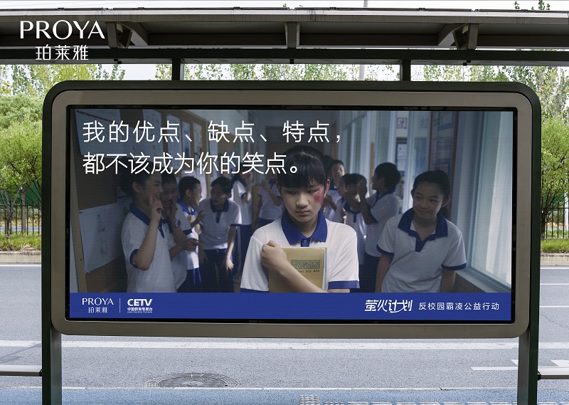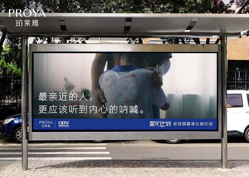 编写《校园霸凌防范指南》,让呼吁落地是珀莱雅做的第二步。而为了辐射更多受众,持续扩大影响力,珀莱雅还在全国多个城市线下公交候车亭进行公益广告投