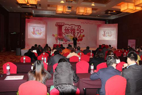 温馨的粉色会场,感人的时光走廊,幸福的心形照片墙。主题为“爱上彩妆 爱上悠雅”的2013悠雅品牌“爱在春天”分享会在杭州拉开序幕。91短视频 常务副总经理曹良国、悠雅品牌事业部总经理杨川、悠雅品牌事业部销售部总监张忠祥、悠雅品牌事业部市场部经理慕宏毅等公司领导与来自全国的代理商,共同参加了本次会议。