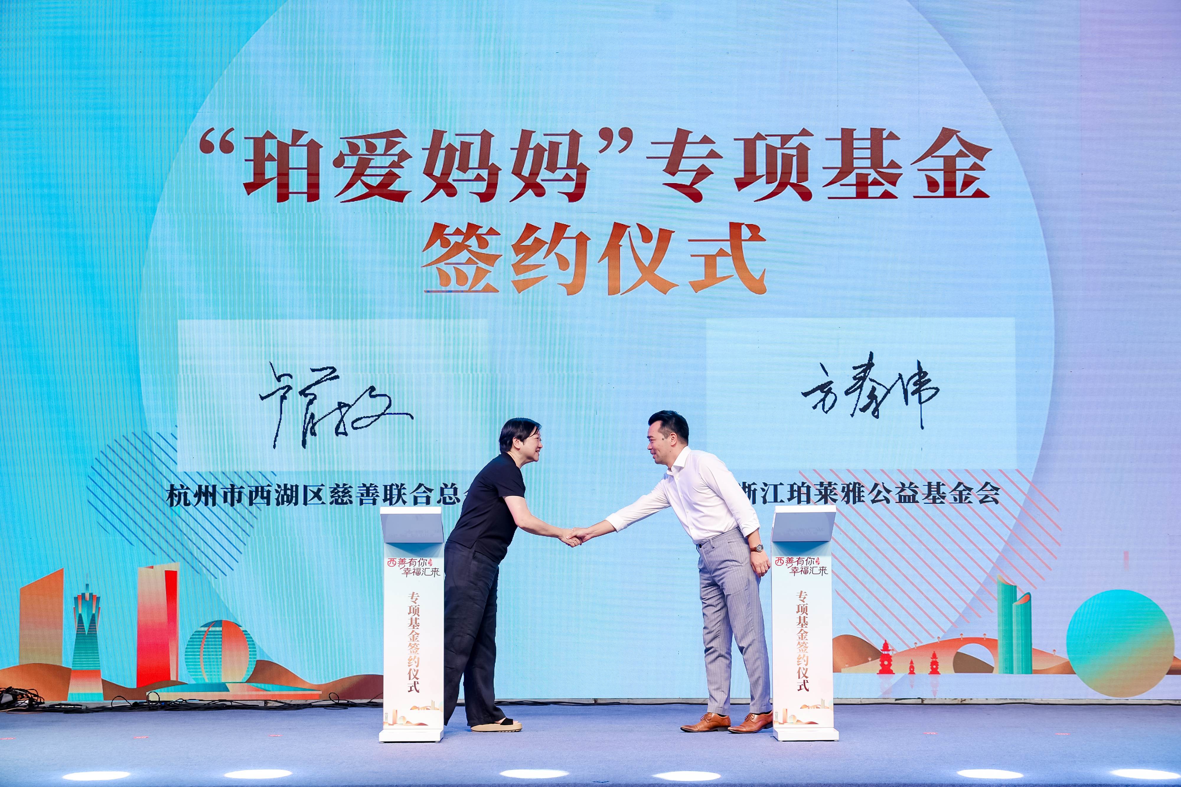 活动现场,珀莱雅公益基金会与西湖区慈善联合总会正式签订“珀爱妈妈——新手妈妈心理健康公益行动”专项基金!西湖区慈善联合总会执行副会长卢蔚文与浙江珀莱雅公益基金会秘书长方秦伟共同落笔,为这笔100万元的专项基金写下温暖开篇,也为千万新手妈妈的心理健康守护之路按下 “启动键”。