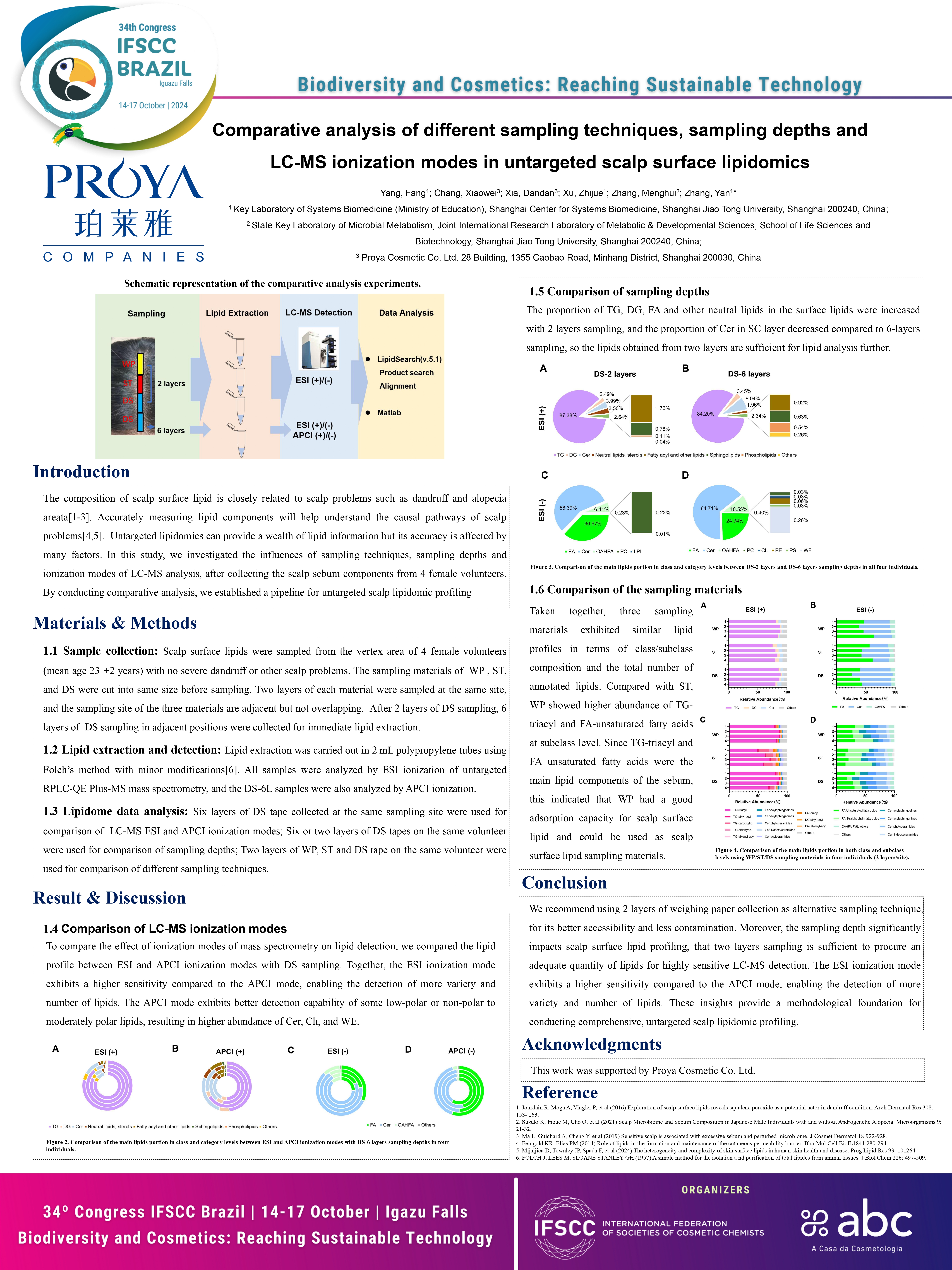 在IFSCC大会上发表题为《非靶向头皮表面脂质组学中不同采样技术、采样深度和LC-MS电离模式的比较分析》的创新研究成果