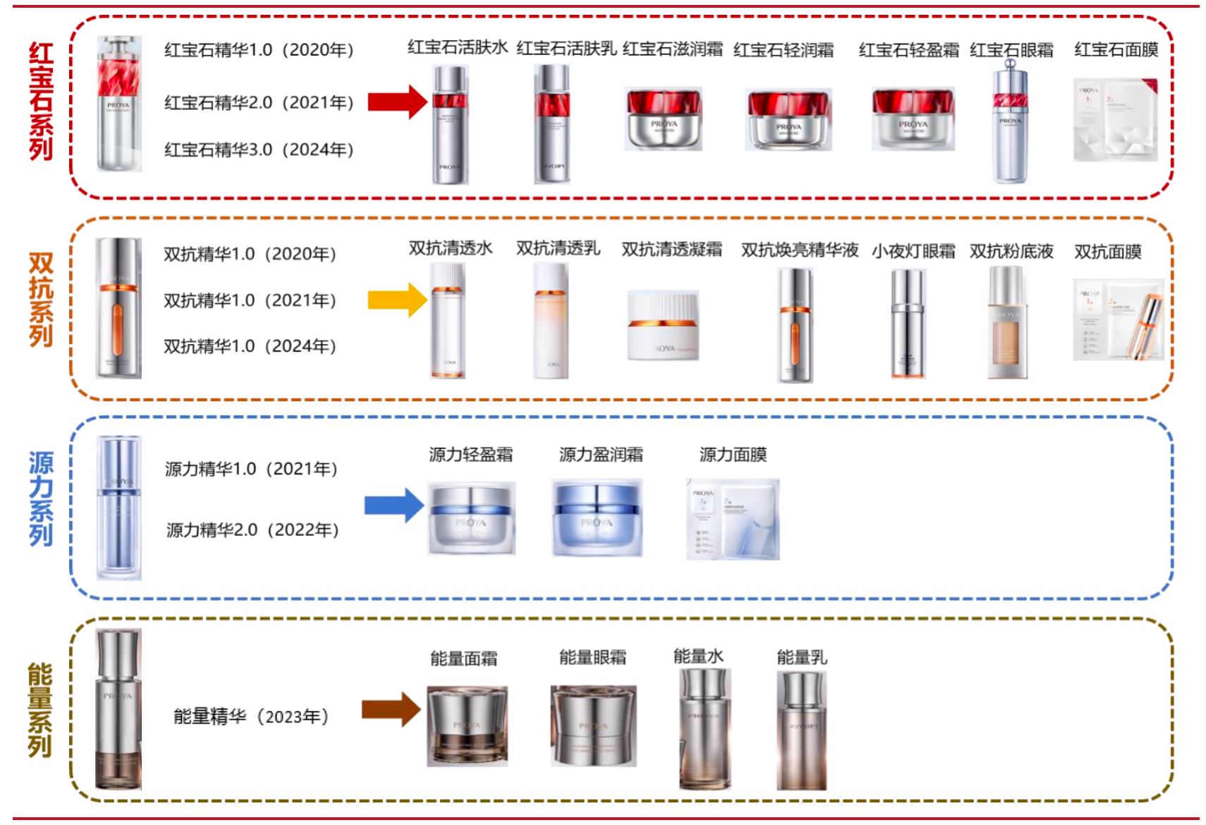 除此之外,珀莱雅品牌旗下源力、红宝石、防晒三大系列均已获得基础研究、学术成果、临床验证、成果呈现的强大科技力背书。