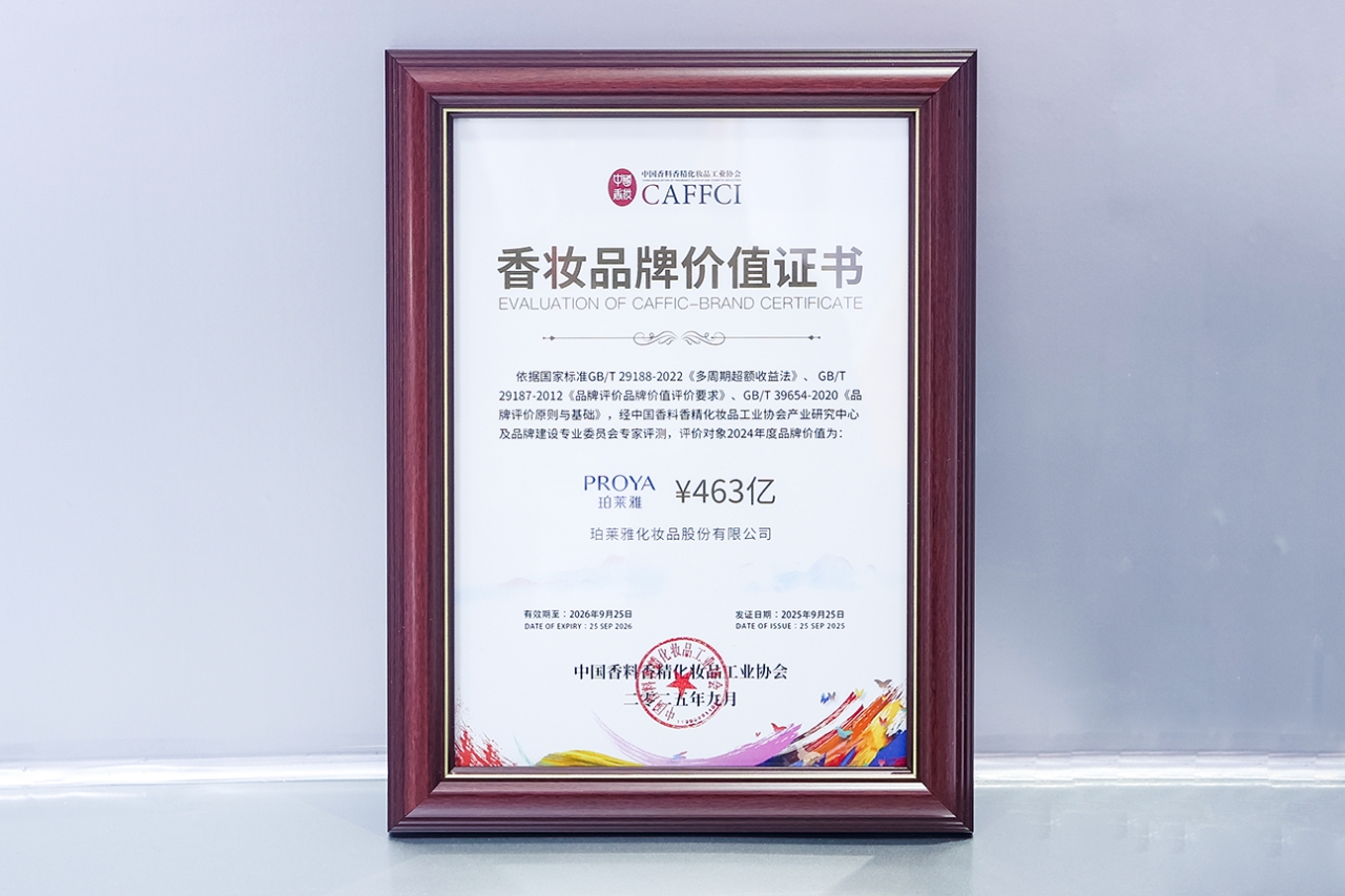 珀莱雅品牌荣登“2025中国香妆品牌价值评估调研”国货品牌第一
