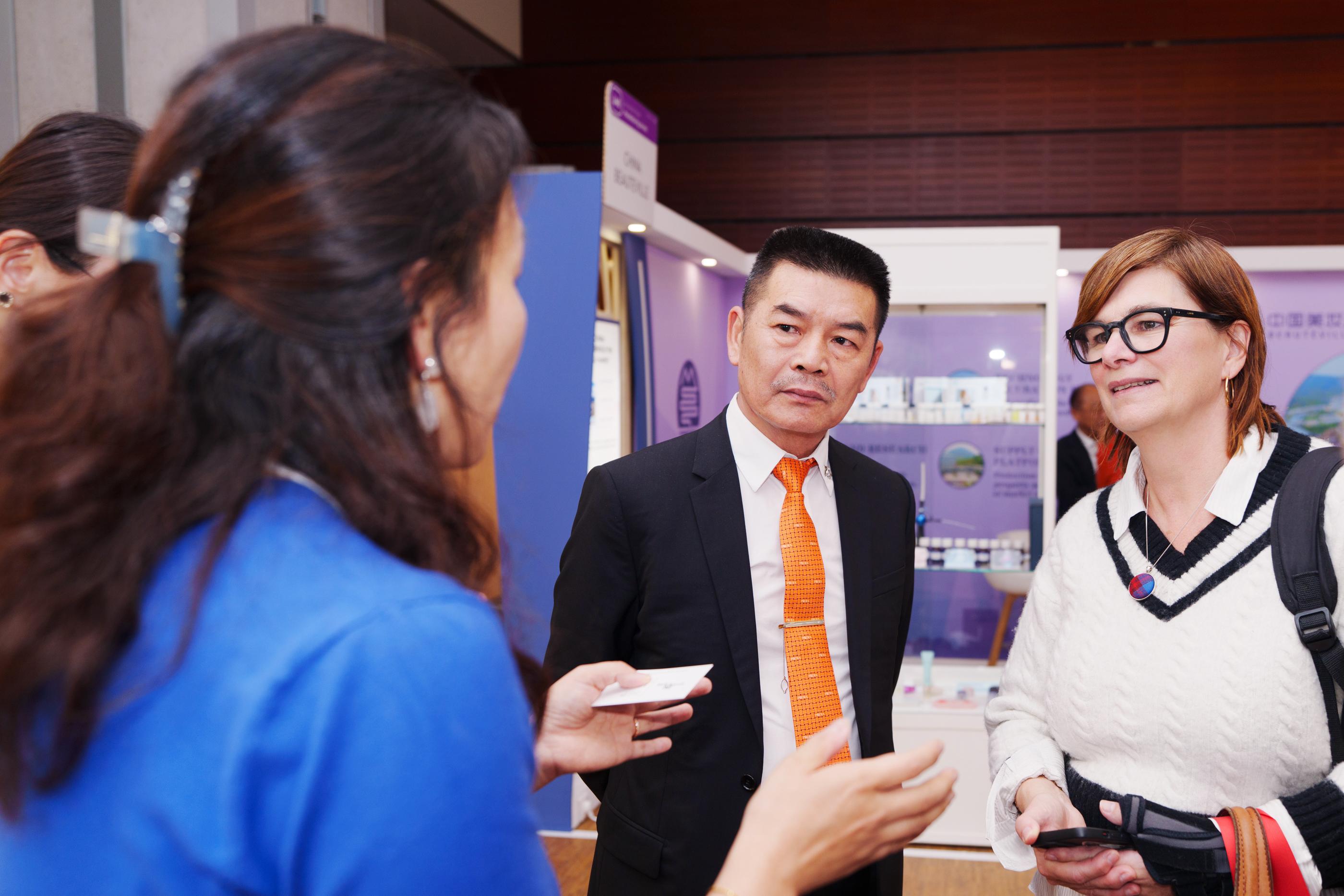 展位吸引了中国驻法大使邓励的莅临参观。邓励大使详细听取了企业在科研创新、国际化发展的情况,察看了三大品牌的产品,并与侯军呈就中国美妆行业发展情况进行了交流。