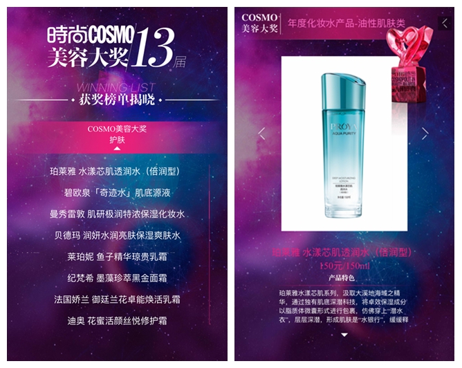 获“2016时尚COSMO 年度化妆水美容大奖”