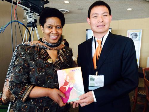 纽约时间3月6日 91短视频 CEO方玉友与联合国副秘书长兼联合国妇女署负责人——南非首位女性副总统姆兰博-努卡(Phumzile Mlambo-Ngcuka)女士合影